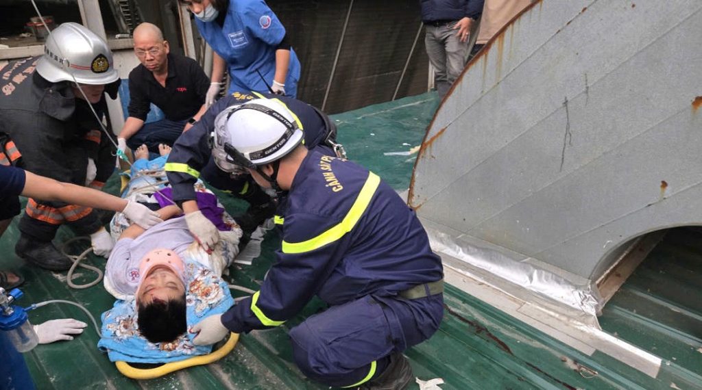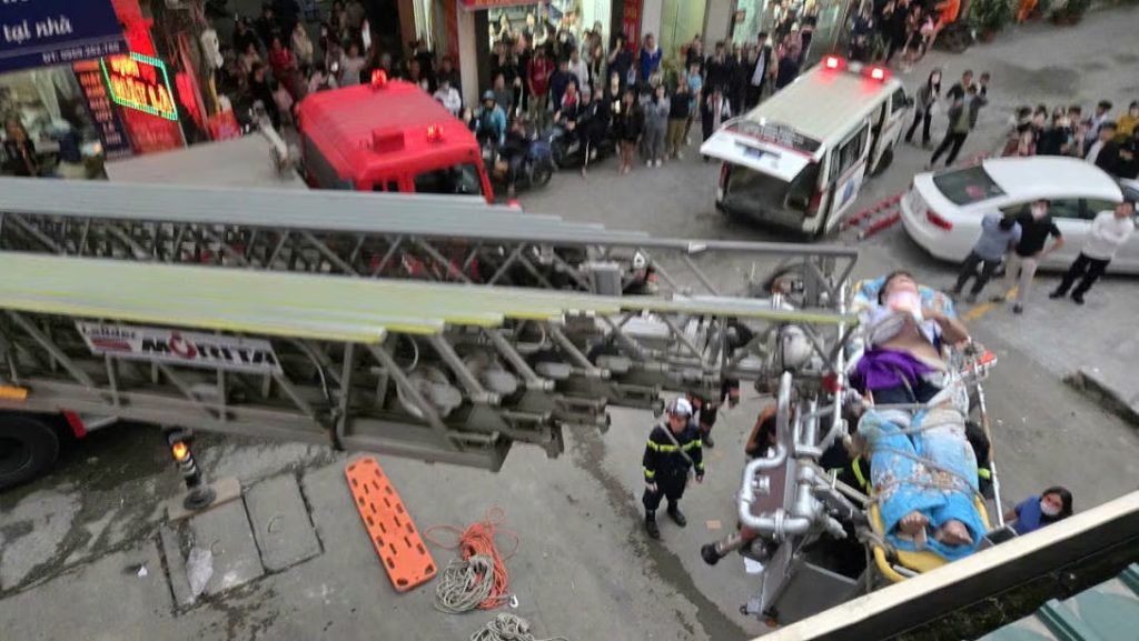 Chỉ huy chữa cháy đã khẩn trương chỉ đạo cán bộ, chiến sỹ nhanh chóng tiếp cận, phối hợp với lực lượng y tế đưa nạn nhân lên cáng cứu thương, tiến hành sơ cấp cứu, nẹp cố định các vị trí bị thương, đồng thời triển khai đội hình đưa nạn nhân từ mái tôn xuống vị trí an toàn bằng xe thang, bàn giao cho lực lượng y tế tiếp tục điều trị.